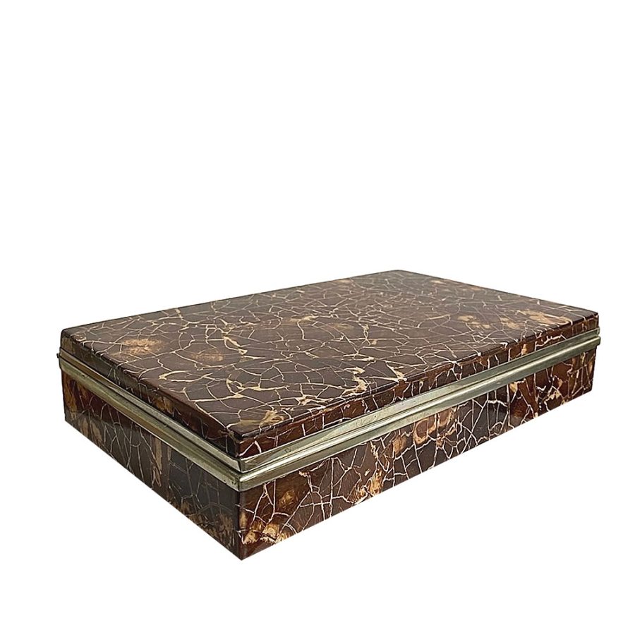 Caja o cofre enchapada en coco. 1970
